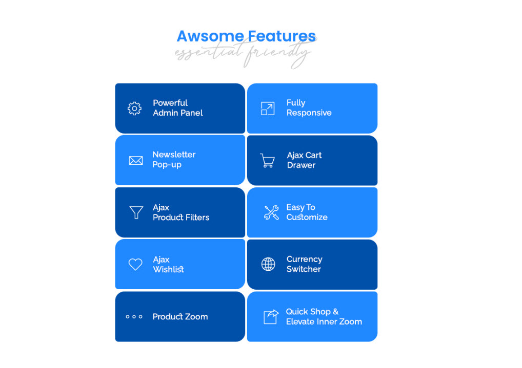 • Great for SEO: Uses the latest Shopify SEO features and product data is formatted for Google rich snippets, so that product listings are optimized for search engines.