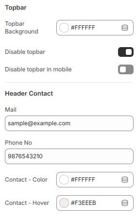 Disable Topbar in mobile: Allows hiding the topbar on mobile devices.