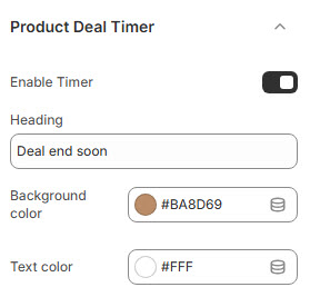 The Product Deal Timer Settings allow you to enable and customize a countdown timer for time-sensitive deals and promotions.